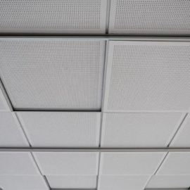 A dropped ceiling is a secondary ceiling, hung below the main (structural) ceiling. It may also be referred to as a drop ceiling, T-bar ceiling, false ceiling, suspended ceiling, grid ceiling, drop in ceiling, drop out ceiling, or ceiling tiles and is a staple of modern construction and architecture in both residential and commercial applications. It is used by a building designer to provide Aesthetics, Service void, Acoustic control, Thermal insulation, Fire protection, Ventilation and Lighting.